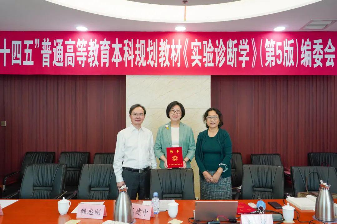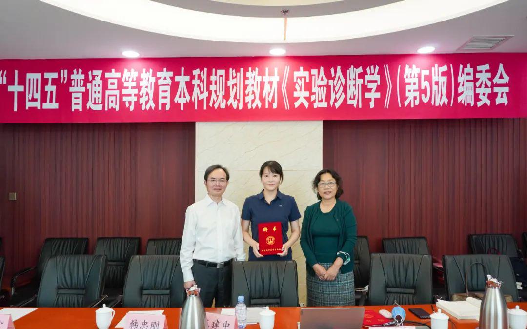 编委刘娜、李佳在《实验诊断学》(第5版)编委会上接受聘书