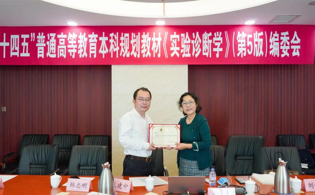 主编张曼教授在《实验诊断学》(第5版)编委会上接受聘书