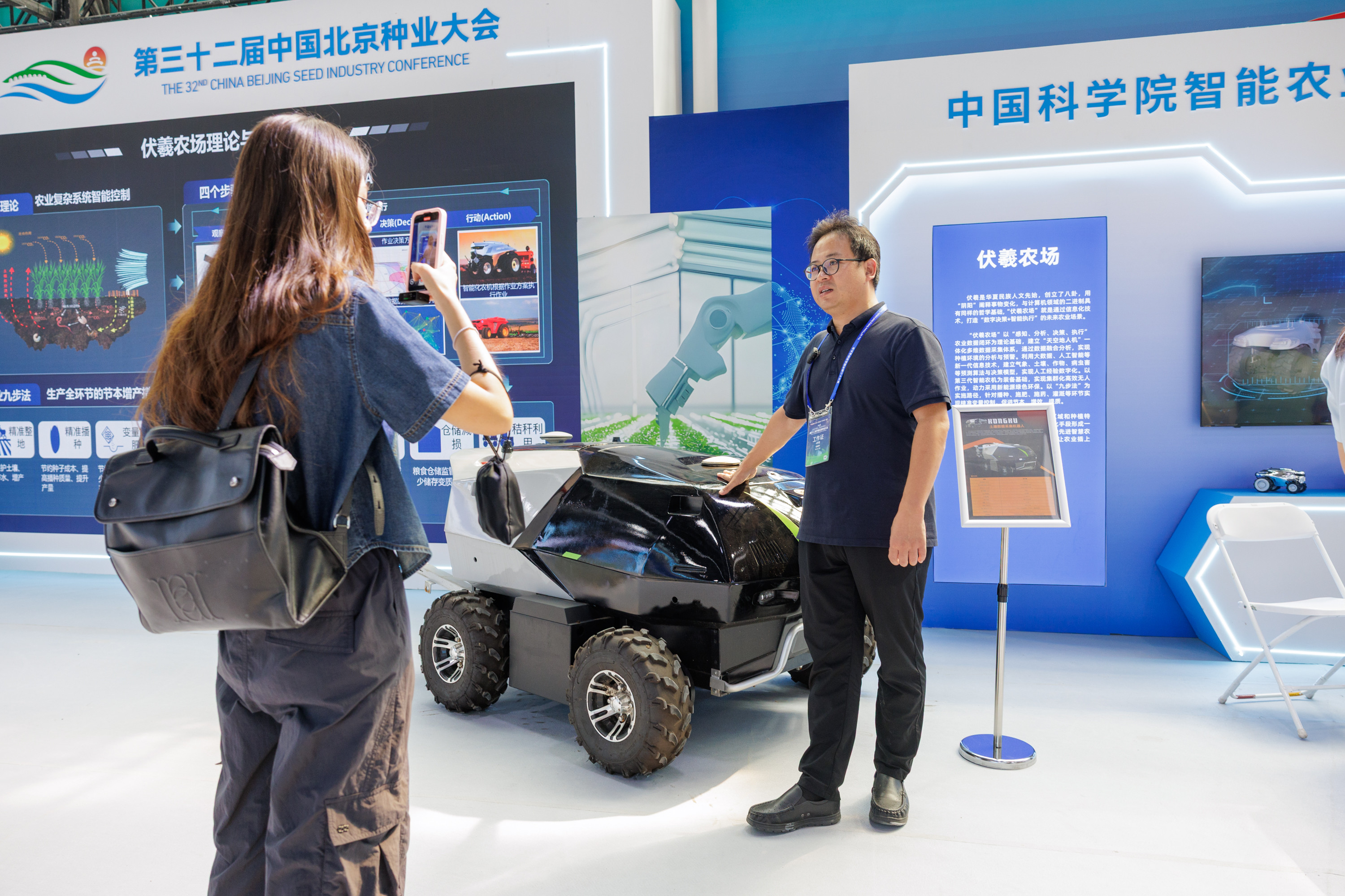 今年年初,北京市农业农村局开始引进中国科学院“伏羲农场”项目。4月1日,该项目在通州区于家务乡正式开工建设。据中国科学院计算技术研究所正高级工程师张玉成介绍,目前项目核心建设内容“三室两厅”(即土壤实验室、种子实验室、农机实验室、技术成果展示大厅、智慧农业指挥大厅)以及百亩级核心试验田、千亩级作业示范田已建设完成,能够精准采集土壤、气象、长势等数据,实现粮食作物生产管理智慧决策和智能农机装备自主作业。9月11日至14日,作为第三十二届中国北京种业大会智慧农业与智能装备板块核心内容,“伏羲农场”项目对外开放展示。