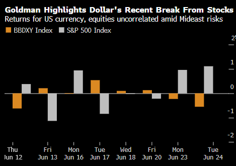 高盛集团表示久联优配,本月围绕中东的地缘政治紧张局势正在重新确立美元与风险资产之间的传统负相关关系。