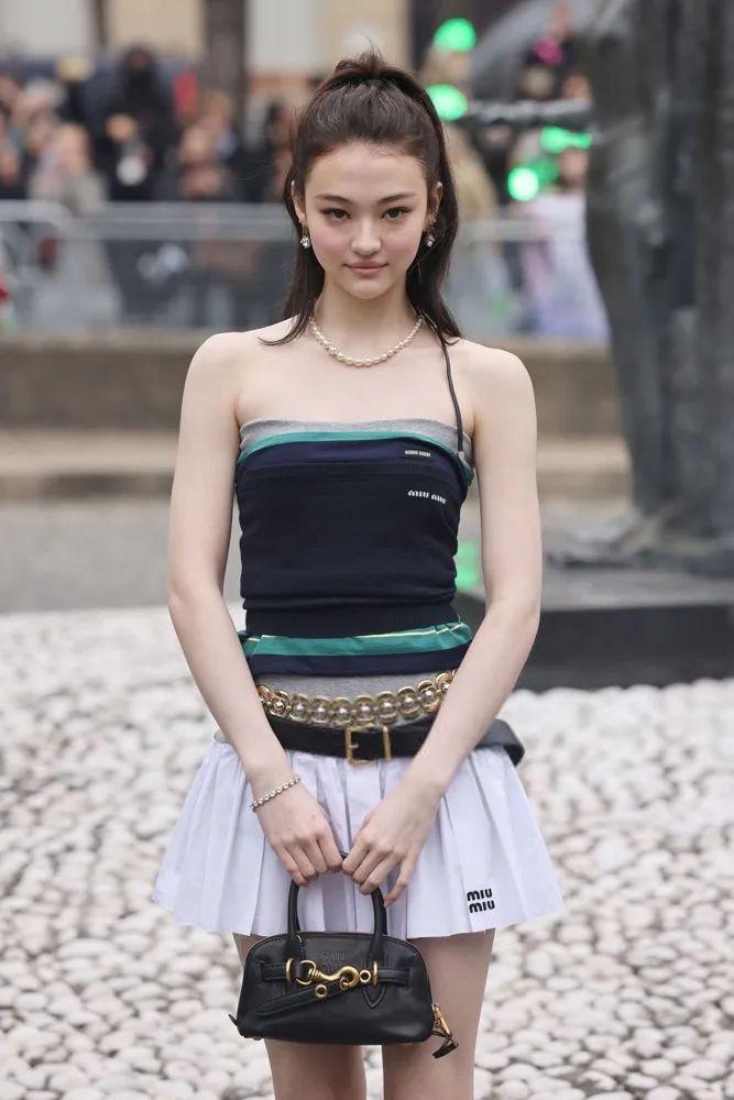 Ella 刚刚出道就成为 MiuMiu 品牌大使,受邀出席了品牌在巴黎的时装秀。