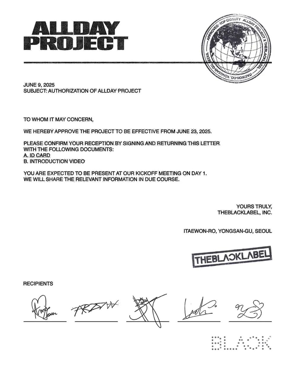 ALLDAY PROJECT 由韩娱公司THE BLACK LABEL打造。THE BLACK LABEL 是什么?是原 YG 娱乐的子公司,由著名制作人Teddy Park(朴洪俊)一手打造,之后逐渐独立,成为独立厂牌。