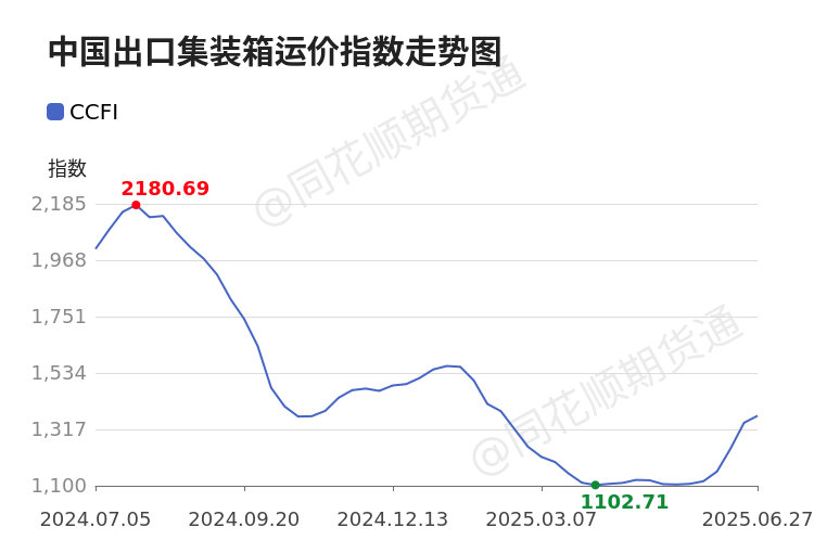 中国出口集装箱运价指数(CCFI),是指反映中国出口集装箱运输市场价格变化趋势的一种航运价格指数。包括综合运价指数及香港、韩国、日本、东南亚、澳新、地中海、欧洲、美西、美东、东西非、南非、南美等11条分航线指数,由上海航运交易所编制发布。