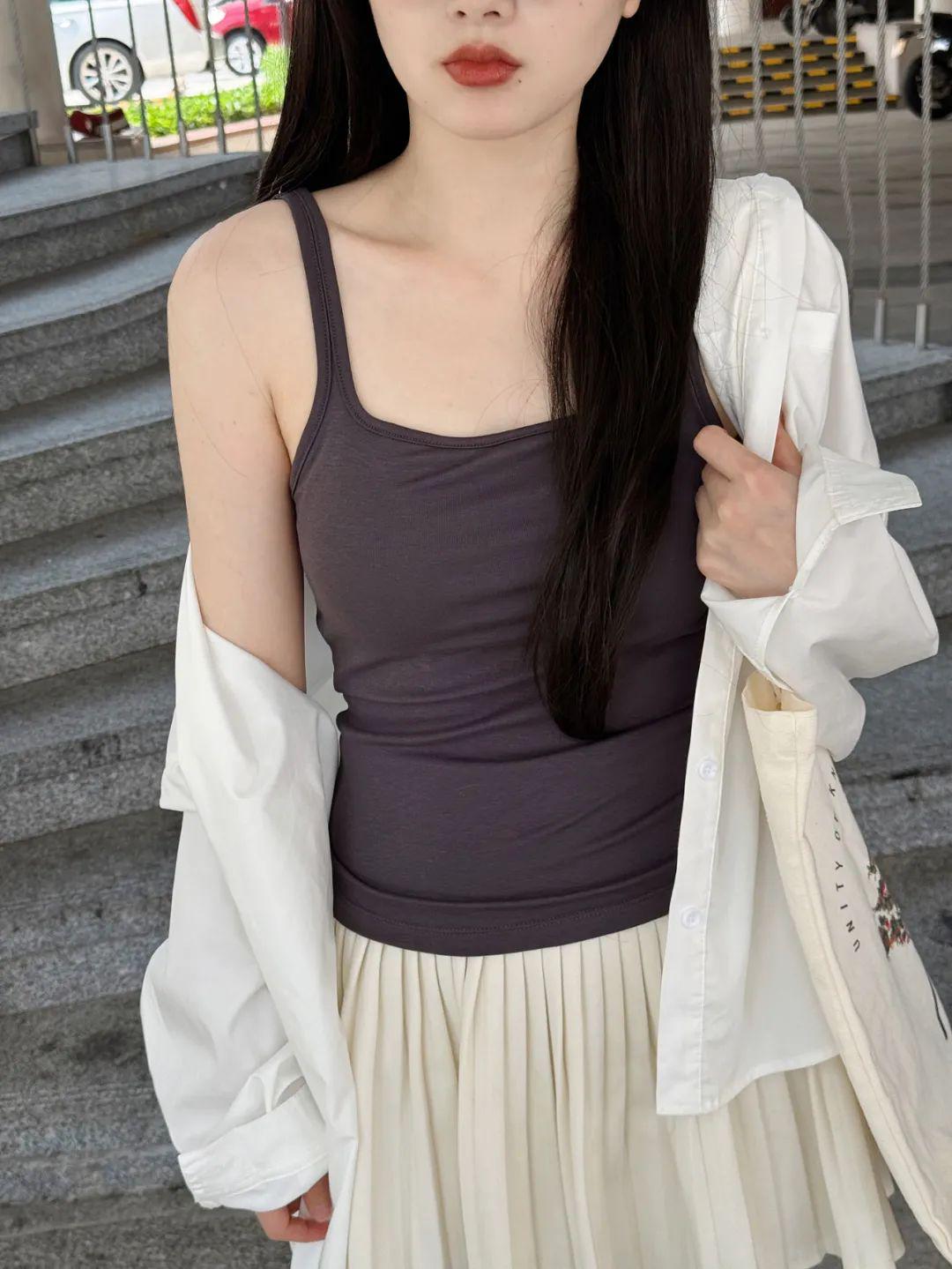 太好穿了!方领宽肩带,是适合大部分人的吊带类型,单穿不尴尬,空调房里内搭好伴侣,还能运动练瑜伽时候穿~