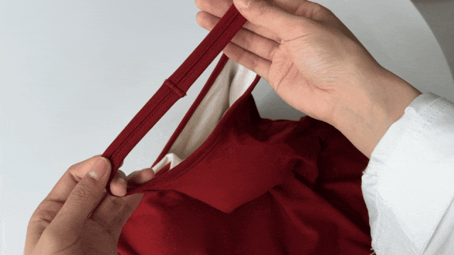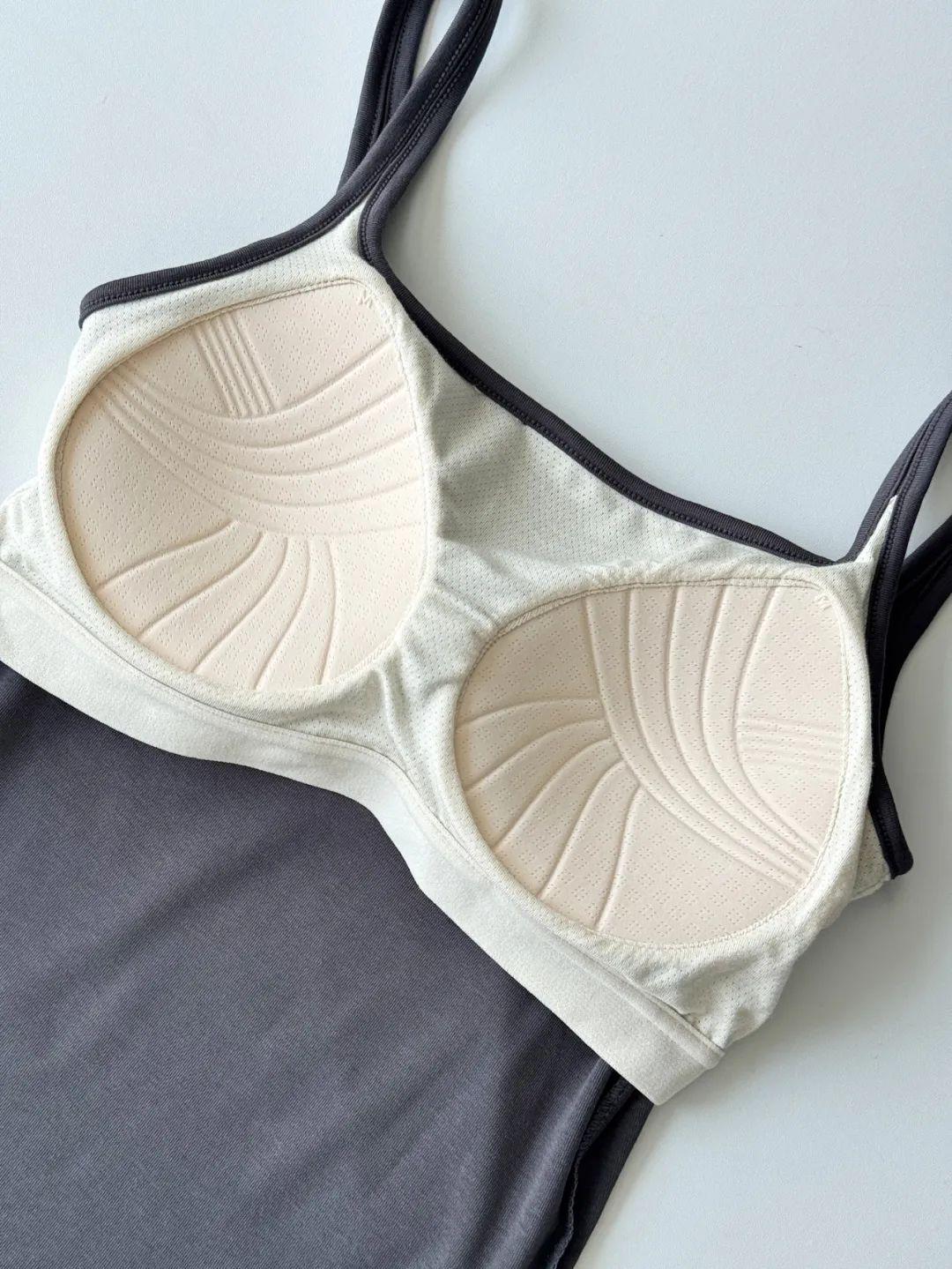 吊带内衣一体式的设计,不易移位,穿脱洗晒都不影响杯垫的位置,非常省心。