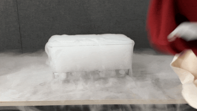我们用白烟模拟身体散发的热气,在白烟产生的一瞬间,就从面料中蜂涌而出。