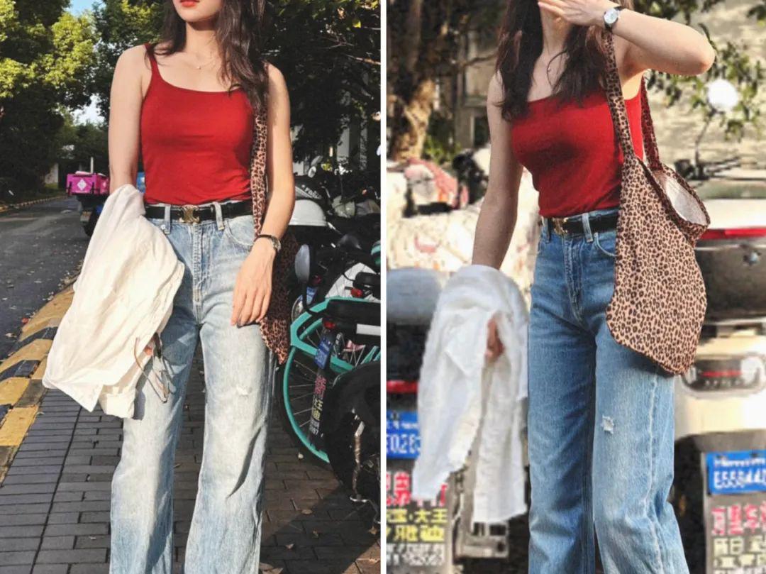 搭配牛仔有一种90年代港星既视感,配伞裙秒变法式辣妹,属于那种一眼吸睛的“氛围感吊带”。