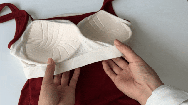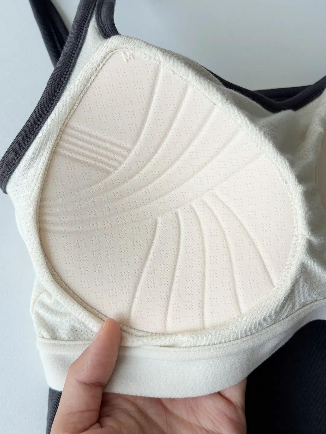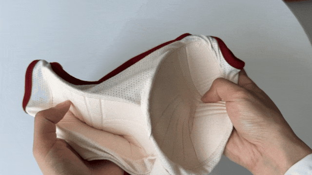 乳胶的胸垫超级柔软Q弹,相比于海绵材质,它的透气性更强,久穿都不会闷汗不舒服。