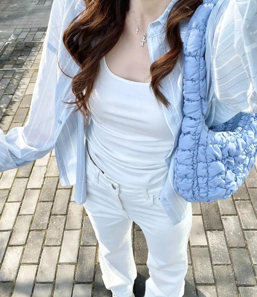 而且它的百搭能力真的完全不输T恤!配牛仔裤清爽,配半裙温柔,配西装外套可以轻松适配职场。